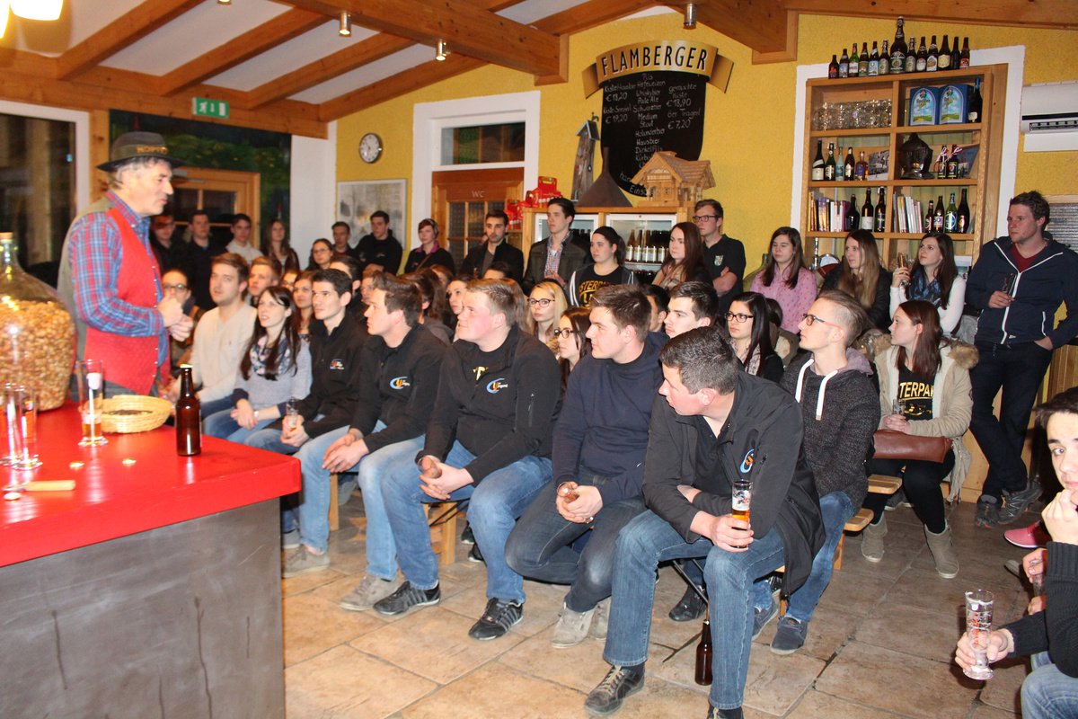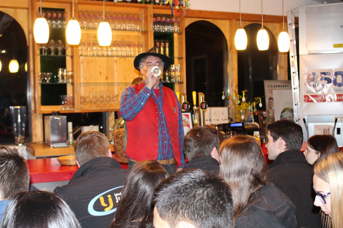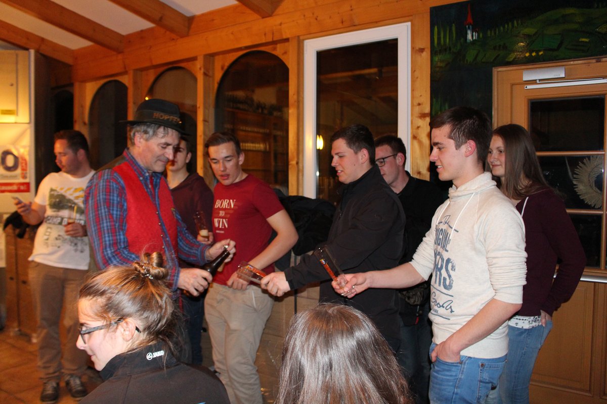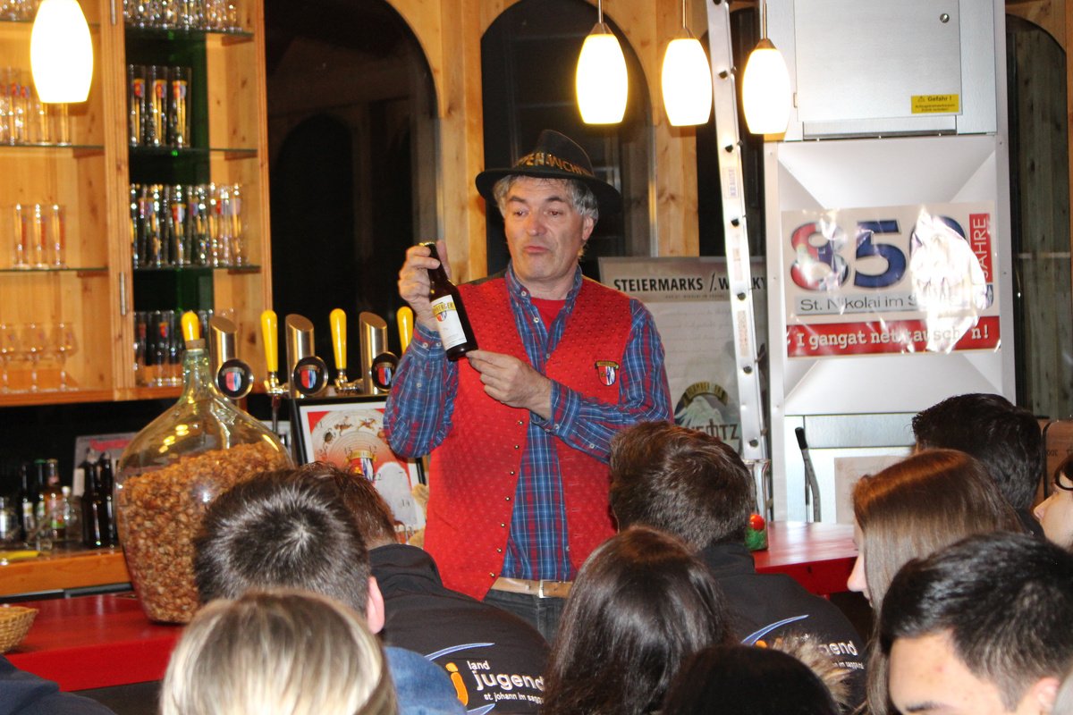 Am 22. Mai fand im Bezirk Leibnitz die erste Agrarkreissitzung statt. Wir haben uns dazu für die Hausbrauerei Löscher in Flamberg, St. Nikolai entschieden, womit wir nicht danebenlagen. Stolze die 70 Mitglieder drängten sich in den kleinen Raum, um begeistert etwas über die Entstehung der Brauerei selbst sowie des Bieres im Speziellen zu erfahren. Angefangen beim Hausbier über das Chili-Bier bis hin zum Bierstangerl wurden wir auch geschmacklich verwöhnt. Zum Abschluss durften einige sogar noch beim spannenden Vorgang des Einmaischens mithelfen. Die anschauliche Gestaltung und die aktive Aufforderung zum Miträtseln machten diesen Ausflug unvergesslich!